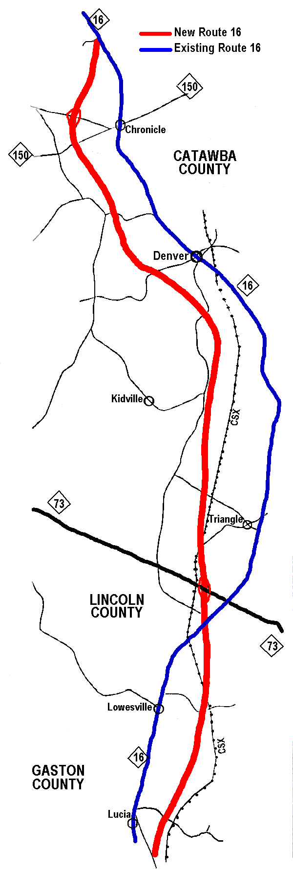 the current route NC16 just below route NC73. The map below provides a overview of the planned